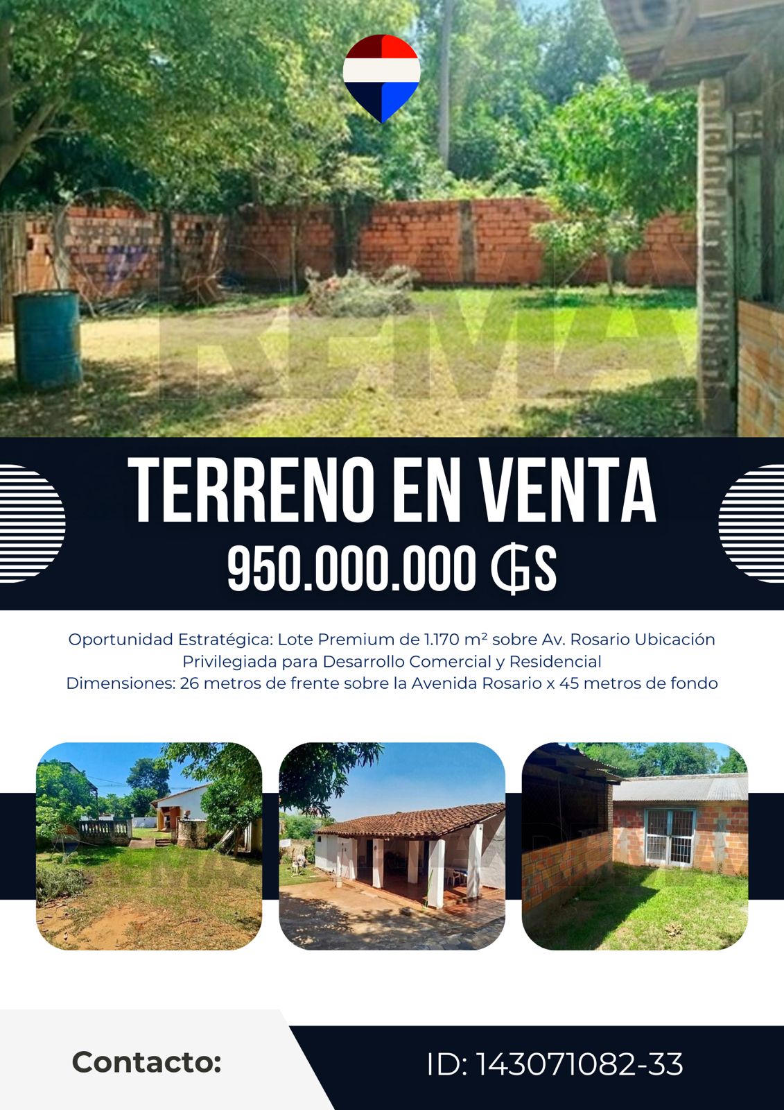 BUSCÁS EL LUGAR IDEAL PARA TU PRÓXIMO PROYECTO? 🏗️✨ Propiedad de 1.170 m² sobre la Av. Rosario. 📍 Frente a la Shell | Medidas : 26 metros de frente x 45 de fondo. 💵 Inversión: Gs. 950.000.000
